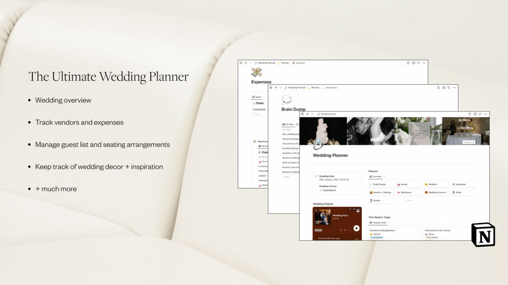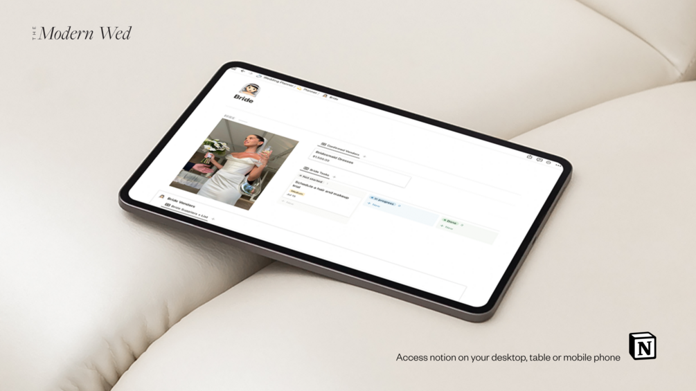 Wedding planning doesn’t need to be stressful. Notion is the perfect tool to help keep you on track to ensure all of your wedding day dreams can come true. This Notion wedding template can easily be customised to fit your wedding needs.